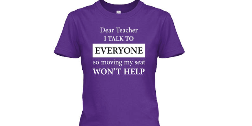 Ezzel a felirattal készült iskolai póló az órák alatt sokat beszélő, cserfes gyerekeknek a TeeSpring jóvoltából, amelynek híre hamar el is terjedt a közösségi média oldalakon. A póló fogadtatása nagyon vegyes, van aki érti a humort, amivel készítették, más kommentelők viszont a tanárok elleni támadásként értékelték megjelenését.