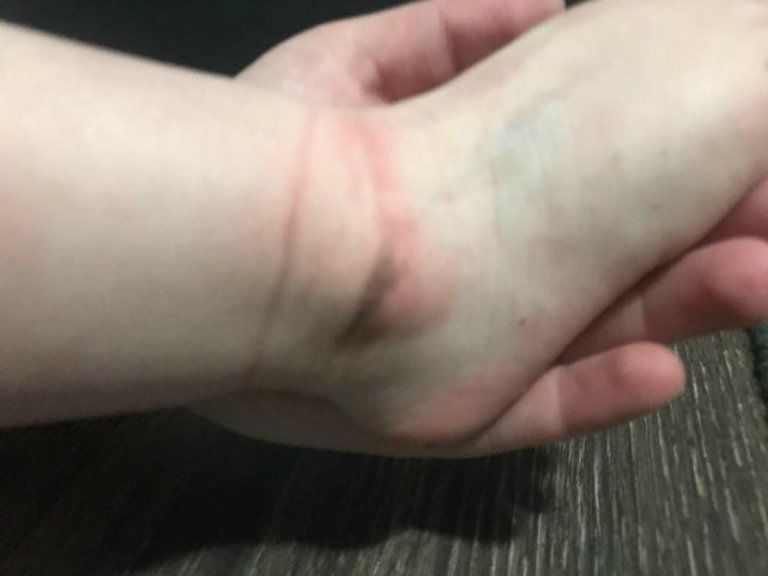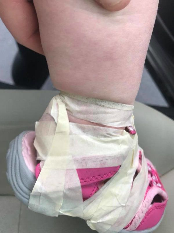 Mivel a baba állandóan levette, a két dadus odaragasztotta a kislány cipőjét a lábához – még úgy is, hogy a gyerek sírt a fájdalomtól, és zúzódások keletkeztek a bőrén.
