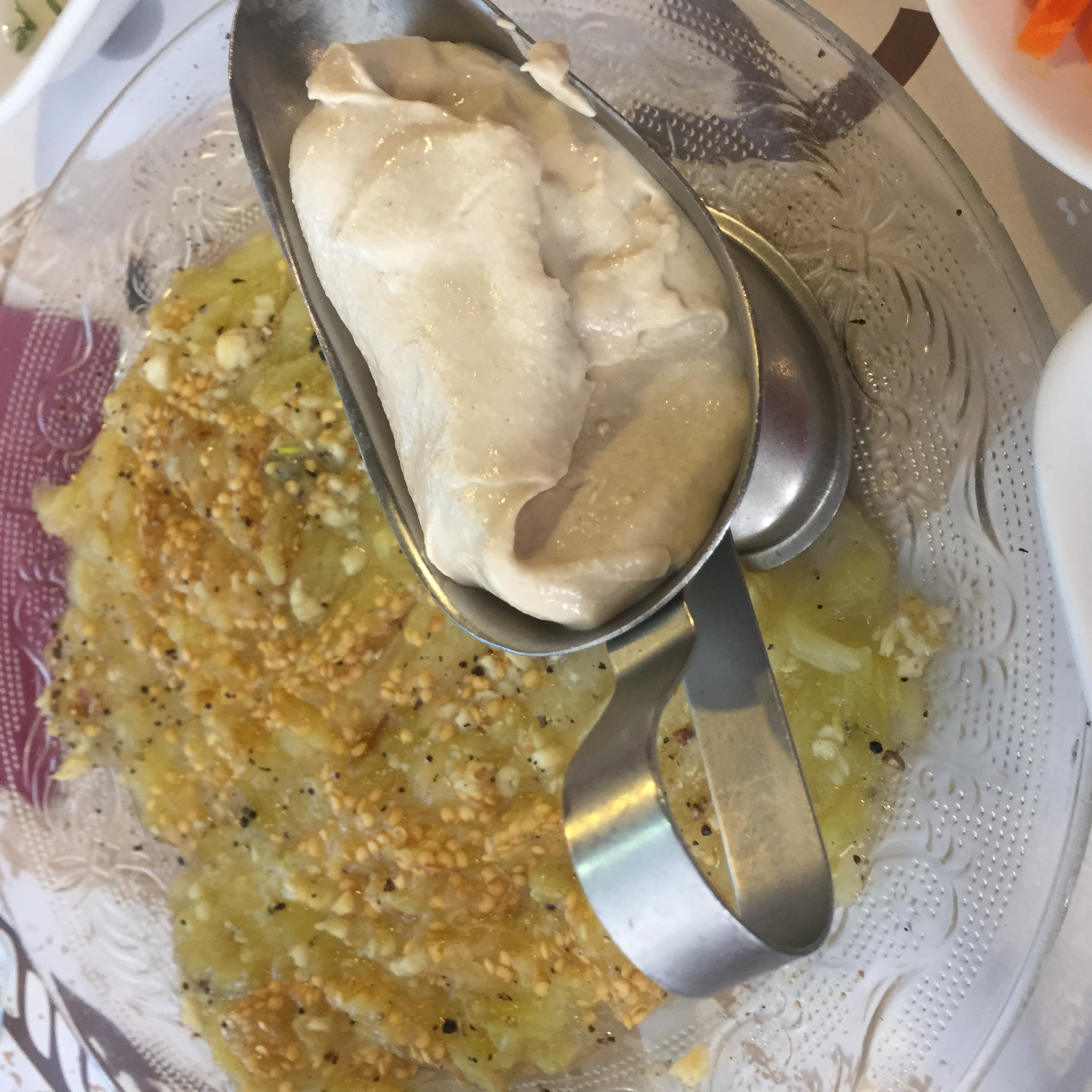 Mesterhármas marokkói kenyérrel a Streetből – padlizsánkrém, tojáskrém és a napi kötelező tahinim