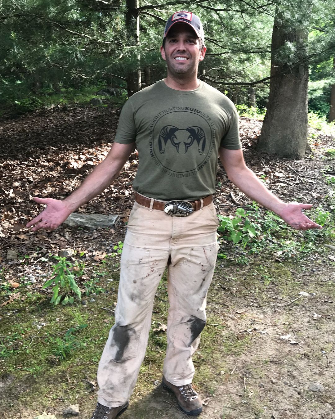 Az ifjabb Donald Trump nem a golfpályán ütöget hétvégén apjához hasonlóan, hanem inkább vadászgat, horgászgat, vagy éppen fát aprít. Viszont ő is nagyon szereti a közösségi médiát, fenti tevékenységeiről többször posztol Instagramján is.