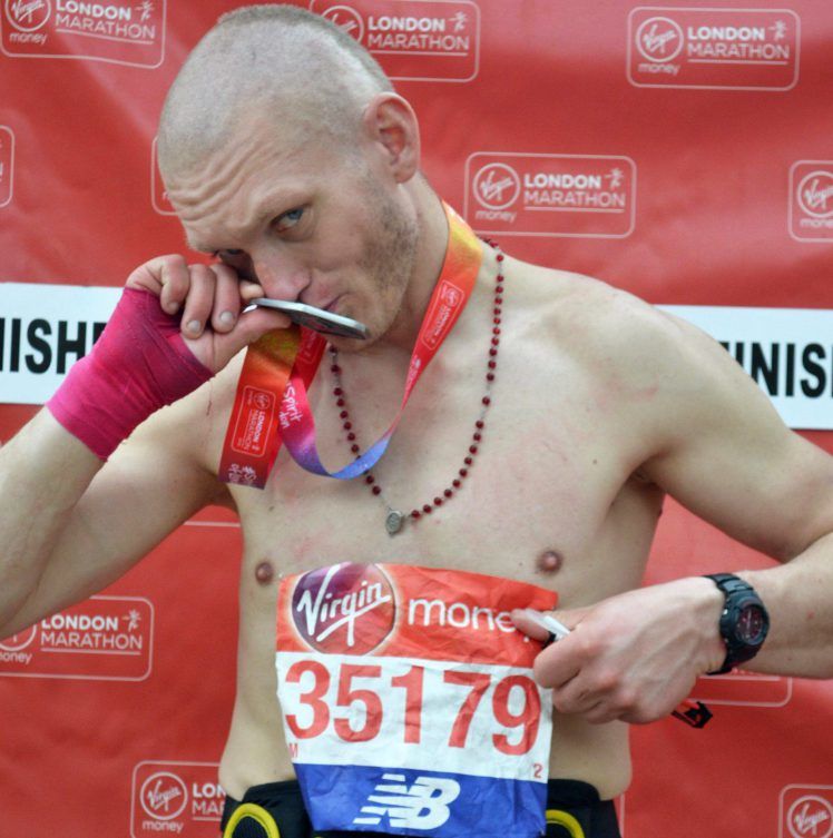 Egy 38 éves, hajléktalan férfi, Stanislaw Skupian a célegyenestől 300 méterre magához vett egy elejtett rajtszámot az április 22-i London maratonon, majd azzal futott be a célba, ahol átvette a 42,195 km-es távot teljesítő indulóknak járó érmet, és le is fotóztatta magát.