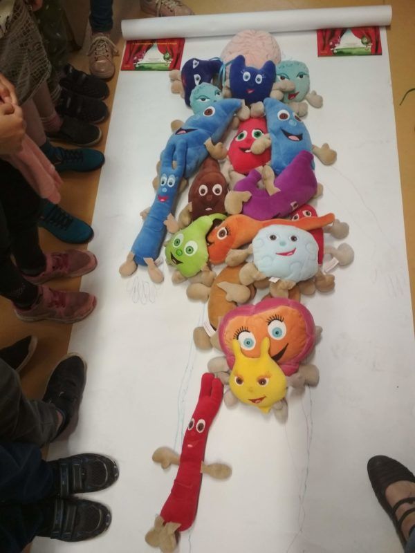 Ha megszemélyesítjük őket, sokkal közelebb kerülnek hozzájuk a gyerekek. Így fognak igazán megmaradni bennük. A gyerekeknek nagyon fontos az is, hogy meg lehessen érinteni a szerveket, mindig viszek plüssből varrt Szervmanókat a foglalkozásokra, ahol meg is próbáljuk őket elhelyezni egy hatalmas papíron, egy társuk körberajzolt testében. Ezt is nagyon szeretik, különösen fontos nekik, hogy aktívak legyenek, mindenki „szerepelhessen”.
