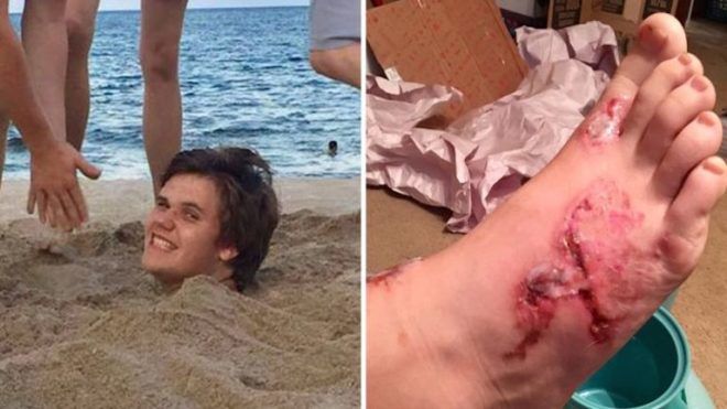 A 17 éves fiú anyja mindenkit arra figyelmeztet, hogy a tengerpart homokjában is húzzanak cipőt.