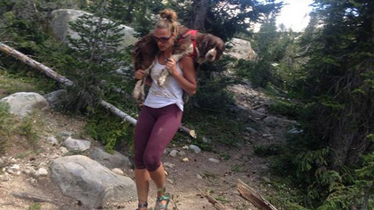„Nagyon rossz állapotban volt a kutya. A szeme puffadt és véraláfutásos volt. Karcolások, vágások borították a hasát és a fejét, nagyon ki volt száradva” – emlékezett vissza az egyedülálló anyuka, aki – annak ellenére, hogy már kimerült volt a hegymászástól – képtelen volt otthagyni a súlyosan sérült négylábút. „Ha az én kutyám vagy a gyerekem lett volna, vagy bárki, akit szeretek, azt akarnám, hogy megtegyék nekem” – mondta a nő, aki úgy döntött, elcipeli az ebet egy darabig, hátha útközben segítséget kérhetnek, ezért a hátára vette a 25 kilós kutyát, és így próbált az apjával leereszkedni a meredek ösvényen, de útjuk nehezebb volt, mint gondolták.