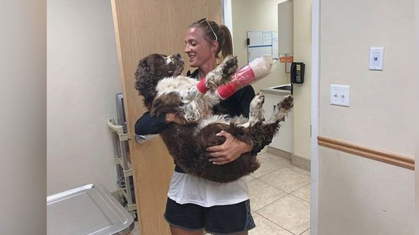 Boomer, az angol springer spániel nagyon szerencsétlenül járt a családi túrázás során: eltévedt, majd egy 30 méteres hasadékba zuhant az idahói Table Rock kirándulóhelynél, és csúnyán összetörte magát. Így talált rá másnap reggel az apjával túrázó fiatal nő, Tia Vargas.