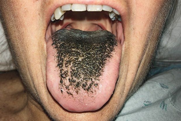 A nőnél a lingua villosa nigra nevű állapot alakult ki, mely olyankor fordul elő, amikor a nyelven lévő apró dudorok, az úgynevezett papillák, amelyek normális esetben körülbelül 1 milliméter hosszúak, ennél hosszabbra nőnek, és elkezdik felfogni az apró élelmiszer-részecskéket, valamint a baktériumokat, az élesztőt és egyebeket. Az állapotot néha az antibiotikumok okozzák, ahogy ez ebben az esetben is történhetett.