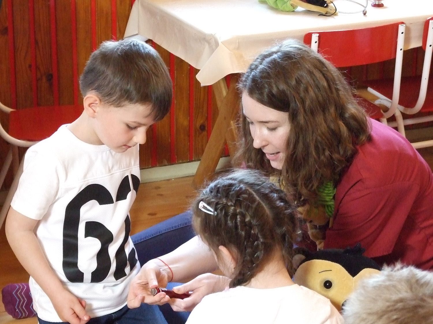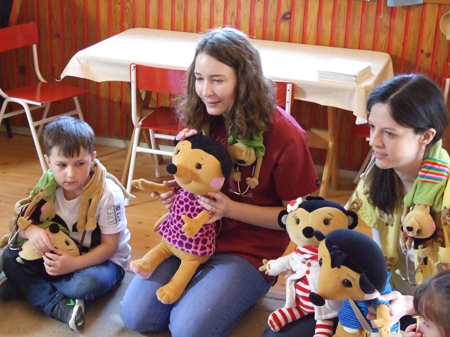 „A pocakjukból kivihető a hasnyálmirigy, meg is mutatjuk: ez az, ami elromlott – mondja Tina. – A bábunak kistáska is van az oldalán, akárcsak a cukorbeteg gyereknek, a fontos eszközökkel. A vércukormérést is eljátsszuk, hogy tudják a gyerekek, mi történik ilyenkor. Aranyosak, azt hiszik, a készülék egy mobiltelefon, hiszen azt mindannyian ismerik. Ők is kipróbálhatják, azt is megbeszéljük, hogy méréskor az első katicabogarat, azaz az első vércseppet le kell törölni. És zárásként mindig játszunk: a szabad játék során a gyerekek kijátszhatják magukból a feszültséget, és ha akarják, használhatják a tanultakat.”