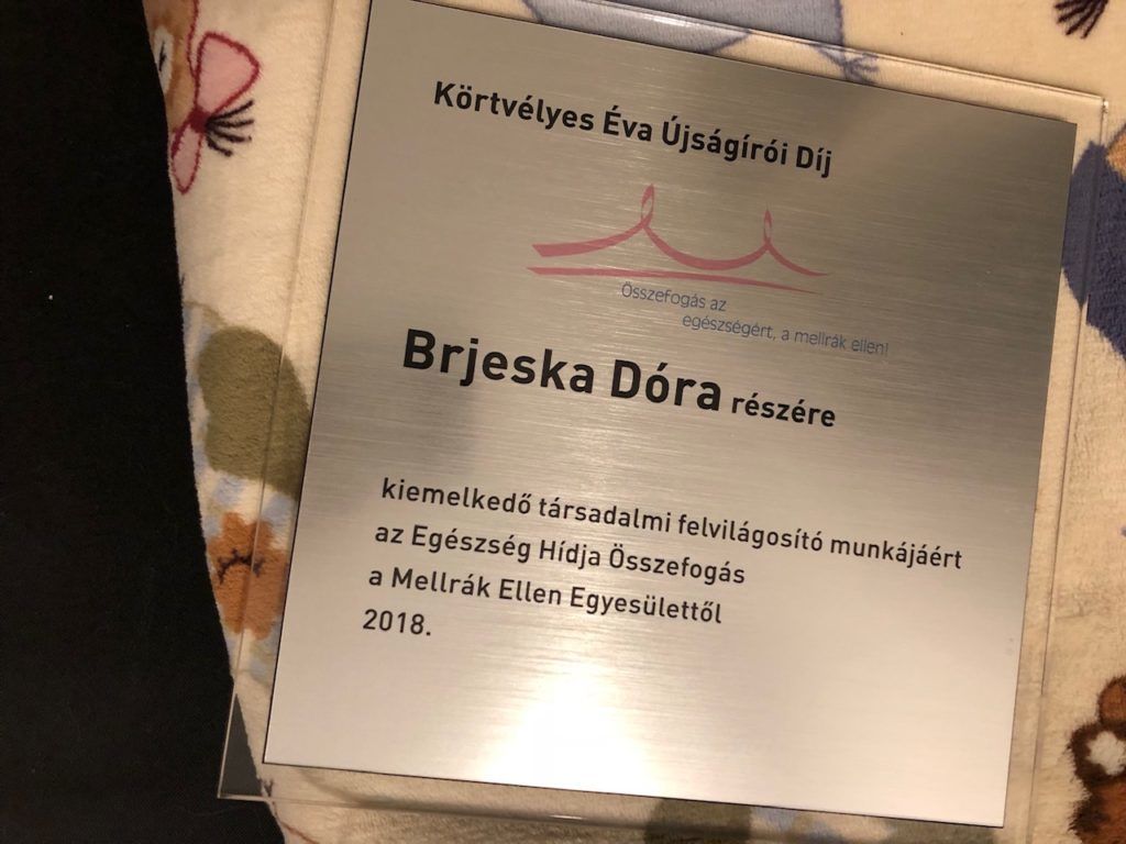 Mindig öröm számunkra, ha kollégánk elismeréséről adhatunk hírt. Dóri esetében az elismerés duplán jár, hiszen személyesen érintettként folyamatosan beszámol a betegségével való küzdelméről, és rengeteget dolgozik azért, hogy a mellrák ügye, a betegséggel kapcsolatos minél több tudnivaló és tanulságos történet eljusson az olvasókhoz. Dóri személyes missziójának érzi azt, hogy a maga eszközeivel egy kicsit könnyebbé tegye a betegséggel küzdők és hozzátartozóik mindennapjait.