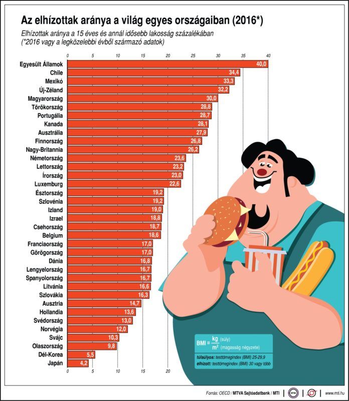 Az elhízottak aránya a világ egyes országaiban. Forrás: MTI