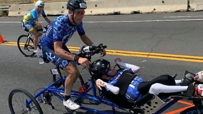 A 33 éves Kyle Pease gyermekbénulás következtében került tolószékbe, és azután döntött úgy, hogy beszáll a versenybe, miután bátyja, a 35 éves Brent 2010-ben végigcsinálta azt. Évekig tartó edzés után a páros múlt héten indult a hawaii triatlonon, ahol rajtuk kívül csak egészséges versenyzők álltak a rajthoz.