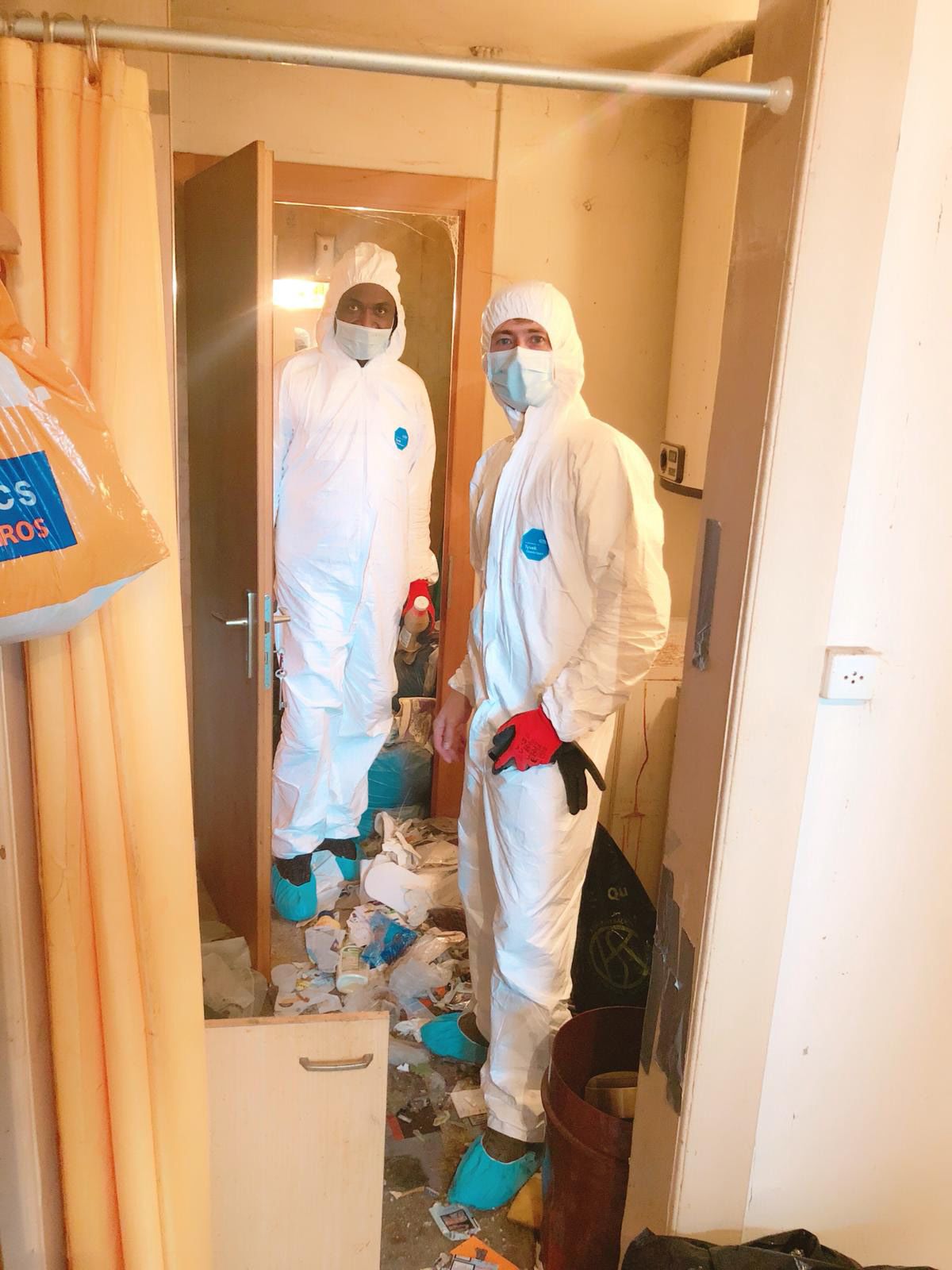 Védőfelszerelésben, 8 órán keresztül hordták a szemetet az egyszobás lakásból – fotó: olvasónk
