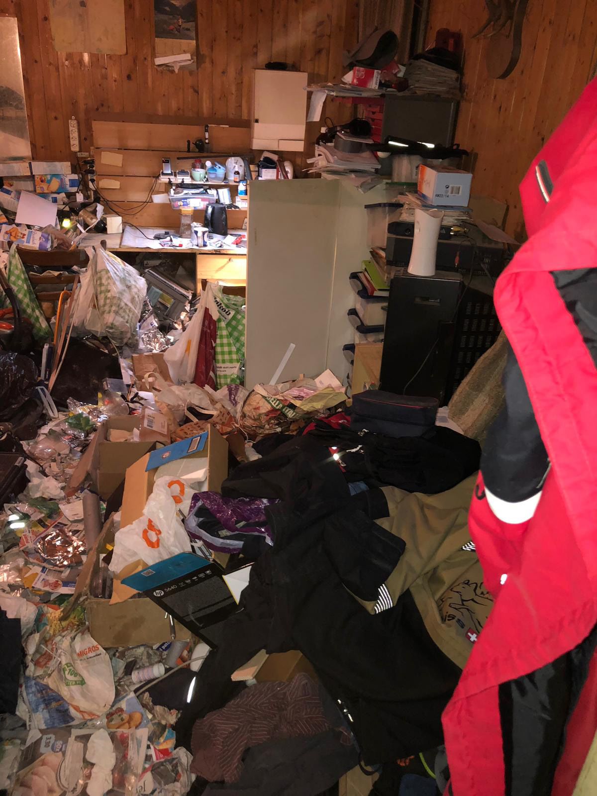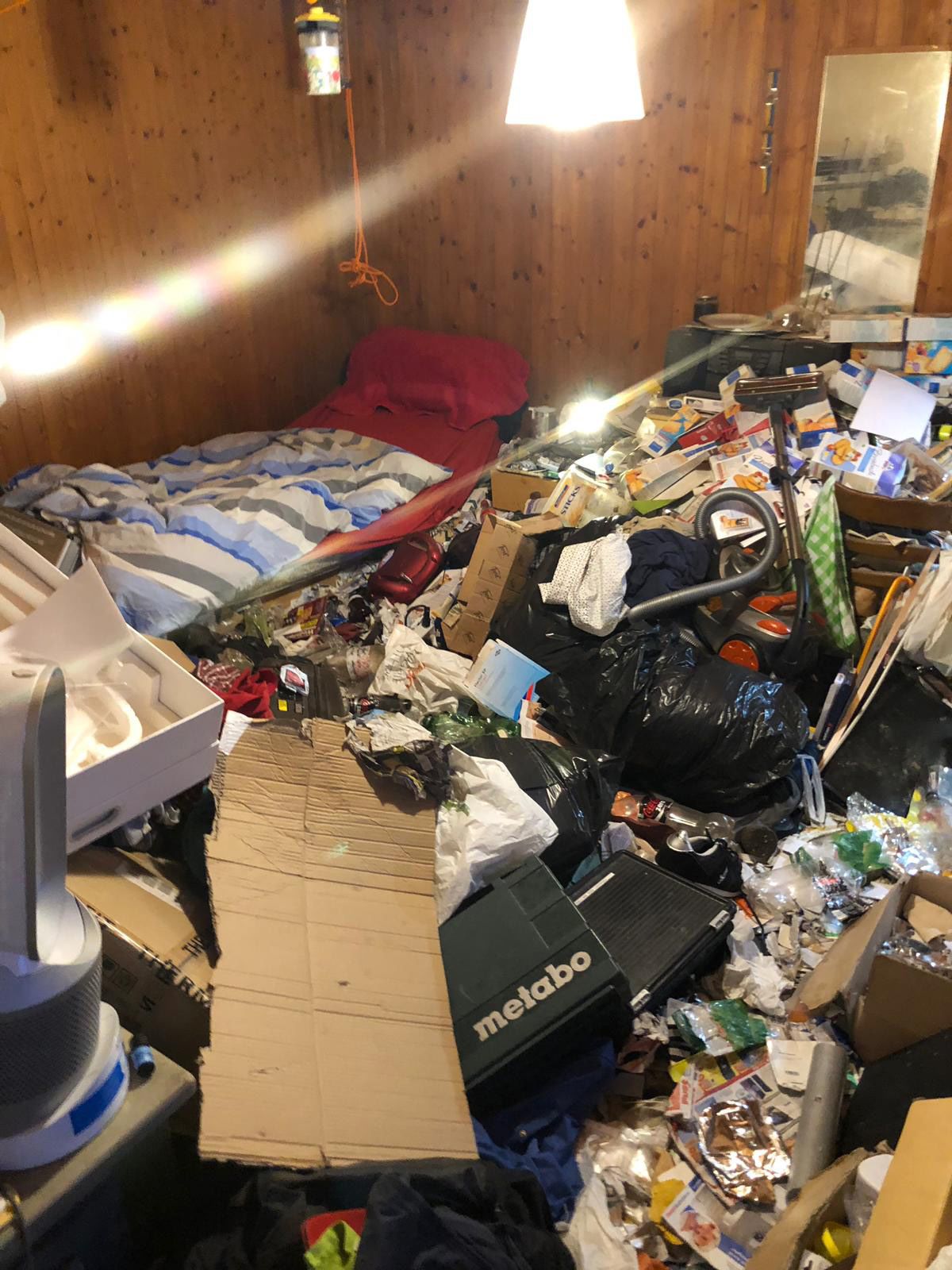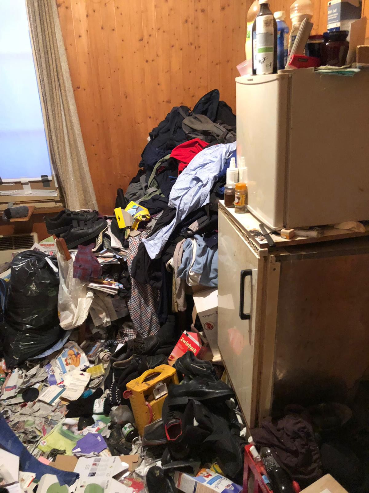 A takarítóbrigád elképesztő látvánnyal szembesült: térdmagasságig állt a lom és a szemét a szobában ugyanúgy, mint a kis főzőfülkében vagy a fürdőszobában. Egyedül a férfi fekhelye volt az, amit nem borított be a szemét. „A férfi nem is fürdött, vagy legalább is nem otthon, mert a zuhanyzót pakolta tele először” – írja Pál, aki négy munkatársával 8 óra alatt 2,7 tonna szemetet lapátolt ki a férfi lakásából.
