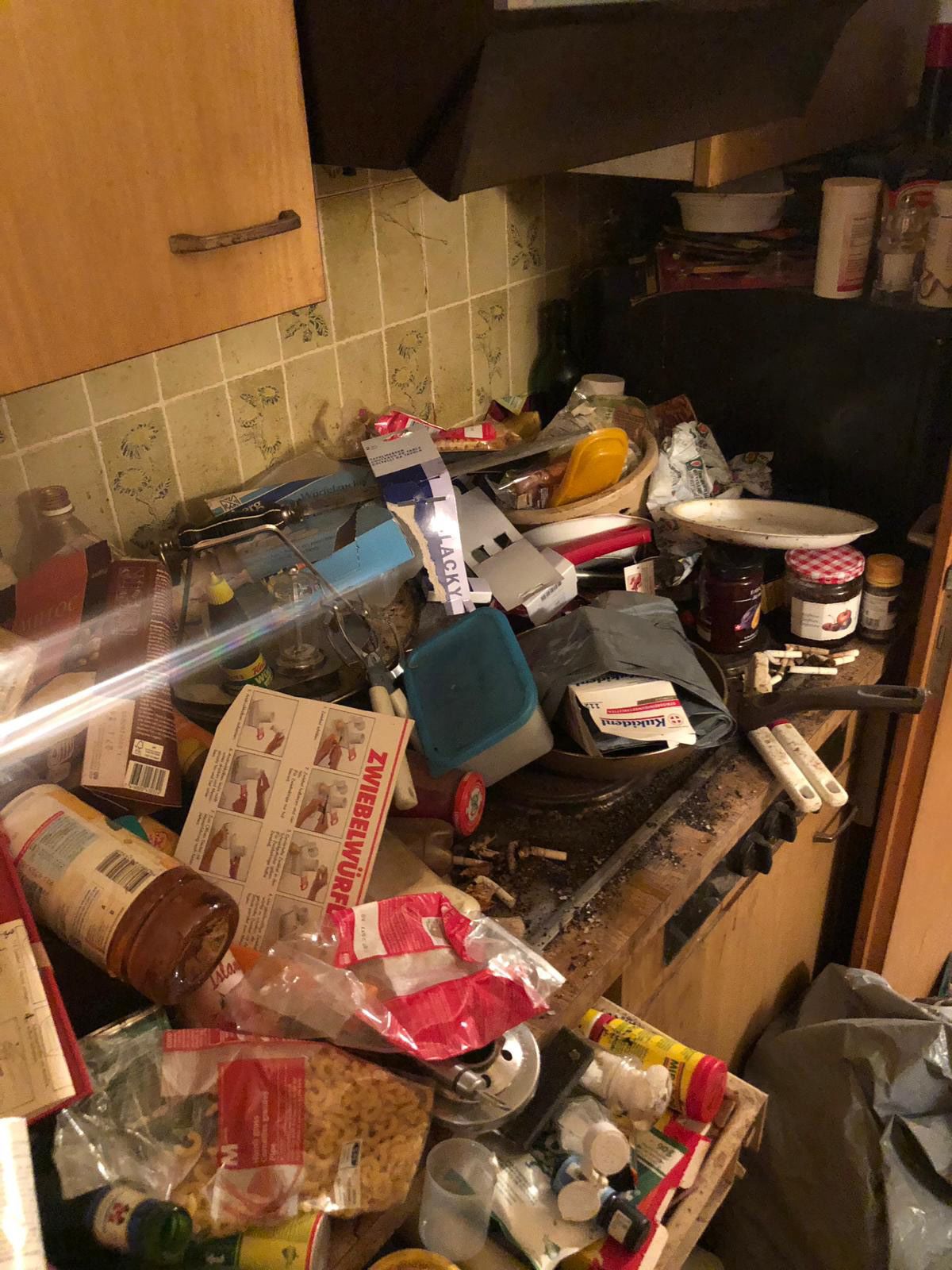 „A látványt megelőzte az az irgalmatlan bűz, ami a lakásból jött: cigiszag, emberi vizelet és romlott étel sajátságos, könnyfakasztó keveréke. Örültem, hogy reggel kimaradt a reggeli” – írja levelében Pál, amelyhez képeket is csatolt a szeméttel zsúfolásig tömött, egyszobás lakásról. „Legnagyobb meglepetésemre semmilyen élő kártevővel nem találkoztunk. Voltak nyomok persze, döglött legyek, légylárvák, de szerencsére csótányok vagy patkányok nem éltek a lakásban.”