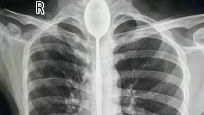 A férfi egy éven át élt a 20 centis kanállal a nyelőcsövében, és már épp megfeledkezett volna róla, mikor egy verekedés során úgy mellkason ütötték, hogy légzési problémái támadtak. Ekkor fordult orvoshoz.