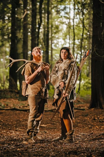 Amellett, hogy mindennapjaikban íjjal vadásznak, nyúlszőrből készült ruhákat hordanak, és egy barlangban élnek, a pár megélhetés gyanánt gyerekcsoportokat kalauzol az erdőben, és megismerteti velük az ősember életformáját.
