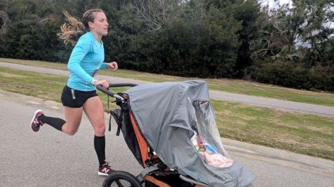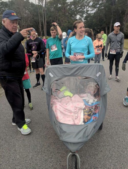 Míg a babakocsiban ott ült az anyuka 3 és 1 éves kislánya, férje, Zach is mellette futott, hogy bátorítsa a folytatásra. A szabályzat szerint ugyanakkor neki tilos volt hozzáérnie a babakocsihoz. „Bekeretezem a díjat, és majd ha megnőttek a lányok, megmutatom nekik, hogy nem ám egyedül csináltam, ők is kellettek hozzá!”