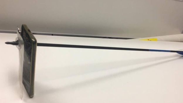 A 43 éves férfira egyik ismerőse támadt rá íjjal és nyílvesszővel – áll a rendőrségi közleményben. A 39 éves támadó rálőtt az áldozatára, aki felemelte a telefonját, hogy lefotózza a támadást. A nyílvessző átfúrta az okostelefont.