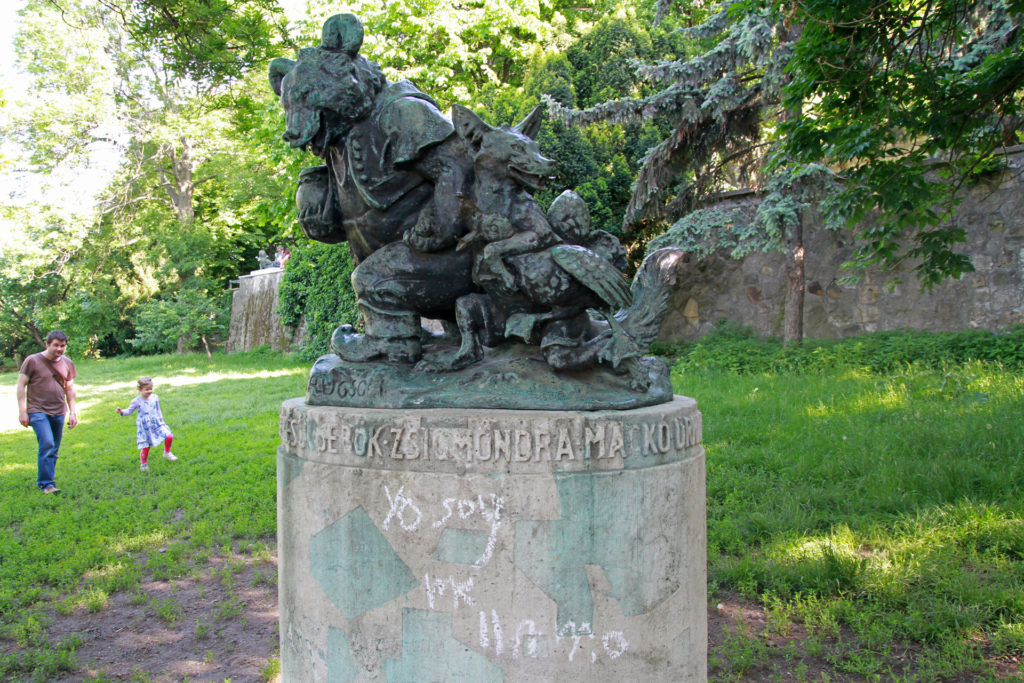 A sétánkat egy közös mindfulness gyakorlattal kezdjük fent a Várhegy oldalában, az Európa Liget alatt fekvő kilátónál, ahol egyébként Maugsch Gyula 1936-ban készült érdekes alkotása található Sebők Zsigmond Mackó Mukijáról és Róka Misijéről, akiknek a fogazata egy gyermekmeséhez talán túl horrorisztikus. A feladat azonban most az, hogy vesszünk el egy kicsit a város látványában, a jelen pillanat keltette érzetekben. A helyszínválasztás nem véletlen a megérkezéshez és a lenyugodáshoz.