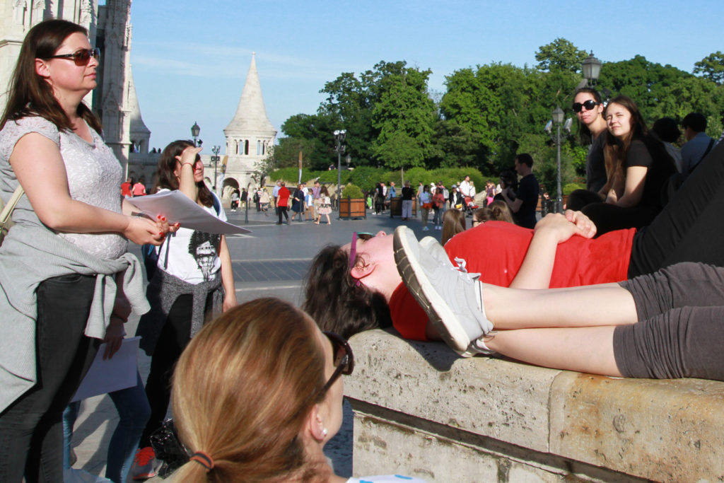 A Halászbástya lépcsőin némán felfelé haladva már értjük, miért is marad le az élményről az, aki még ennyi látványosság között is csak a telefonját nyomkodja. Odakint zsibogás, idebent csend. Kívül is kerülünk valahogy mentálisan a tömegen, és megmosolyogtatóan nonszensznek hat, ahogyan körülöttünk mindenki kényszeredetten grimaszol és pózol a következő fotóhoz. Csak úgy hömpölyögnek idefent a városnéző turisták, mégis csak mi páran vagyunk, akik valójában a várost nézzük. Kicsit olyan érzés ez, mint mikor Neo kikerül a Mátrixból, és