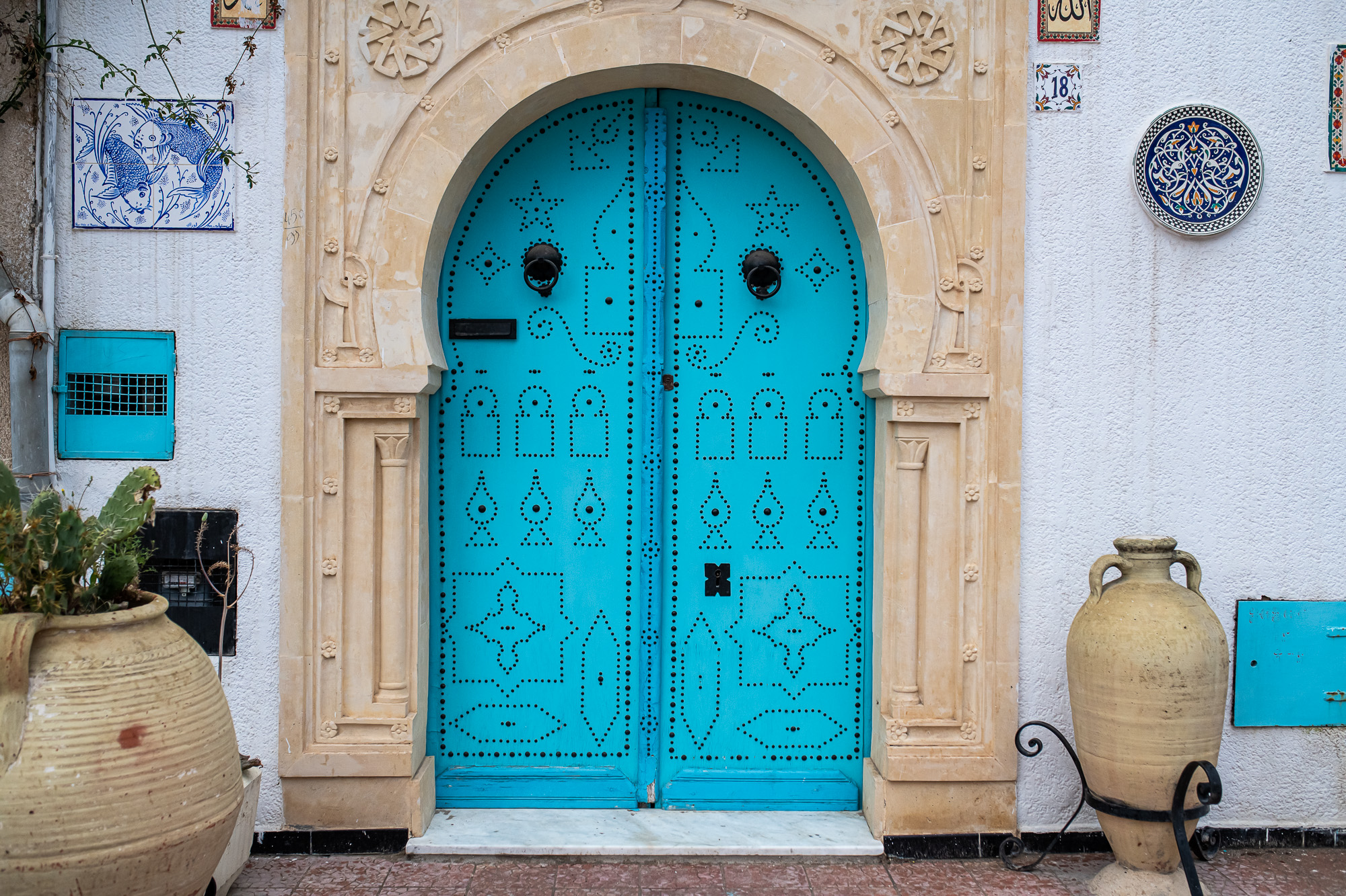 A trükköt az andalúziaiaktól lesték el a helyiek, de itt, Tunéziában lett végül népművészet. Minden óvárosban találunk hasonló ajtókat, de Sidi Bou Said a leginkább következetes: az összes ajtó ilyen, és ragaszkodnak a jellegzetes égszínkékhez is. Akad egy-két fehér és sárga ajtó is, de ezt a kihágást tényleg csak az excentrikus családok engedhették meg maguknak.