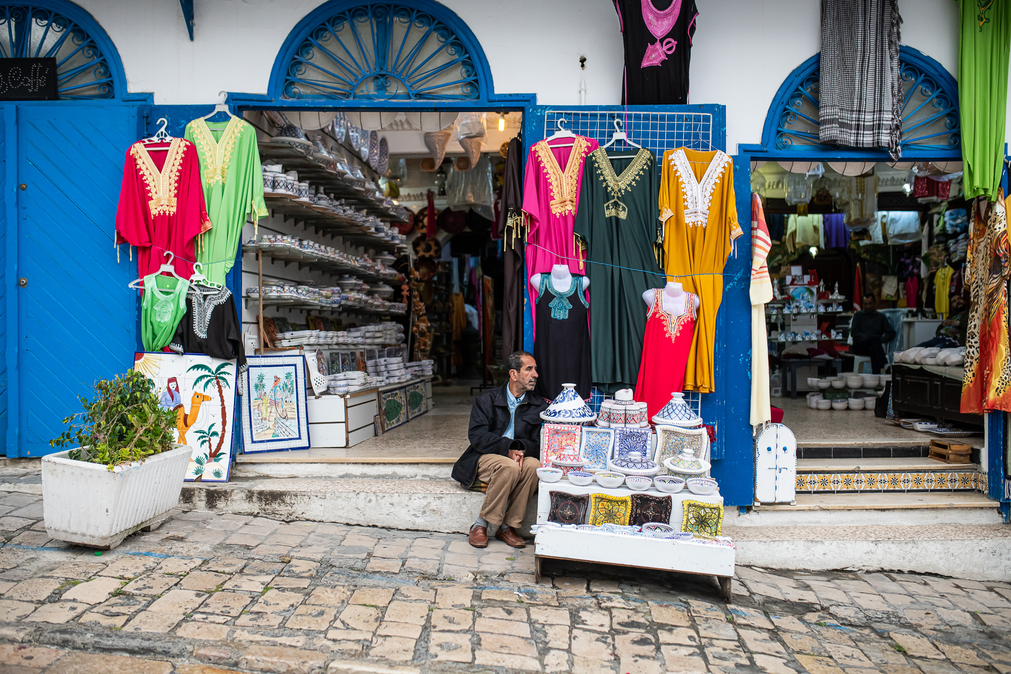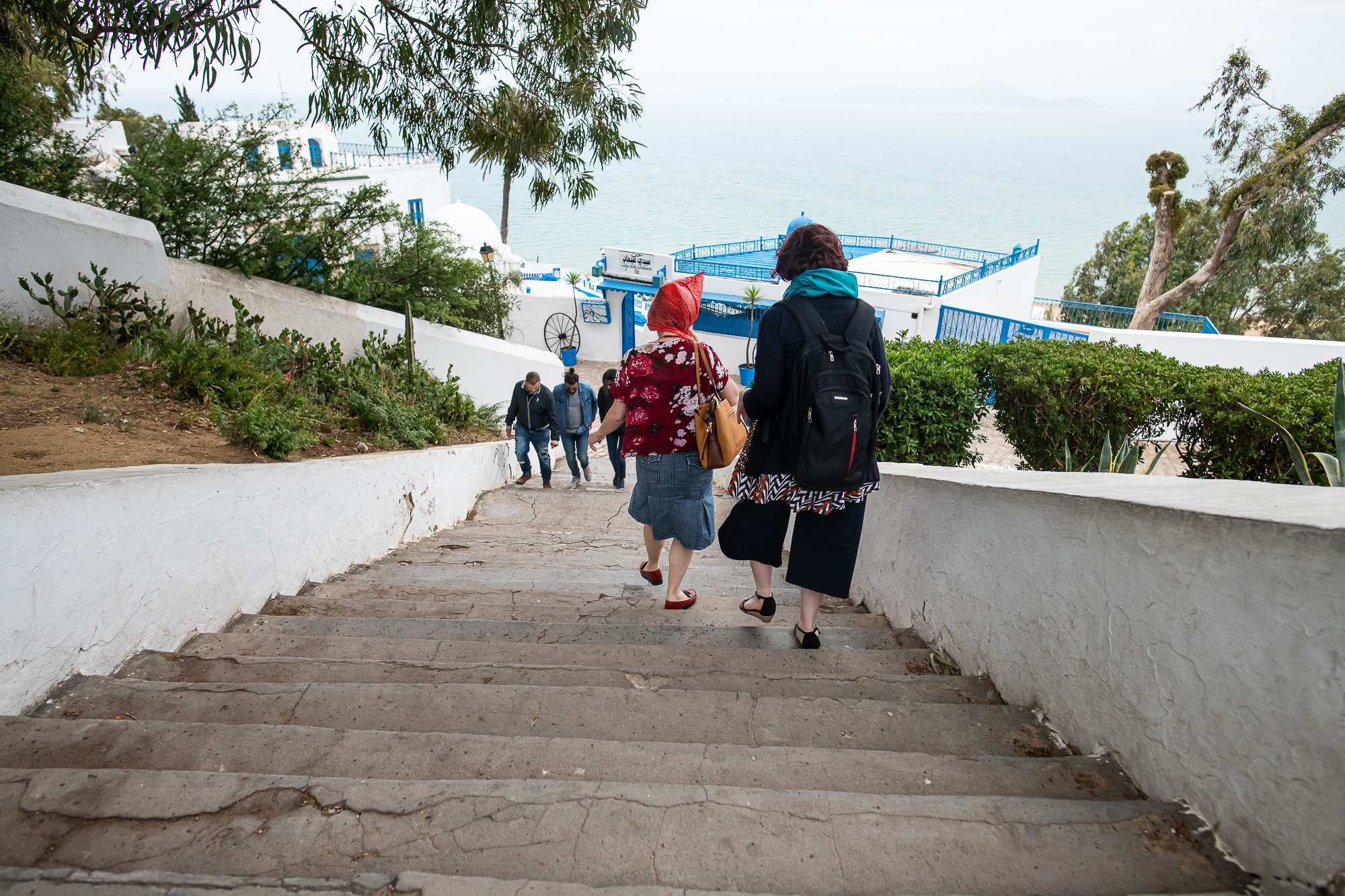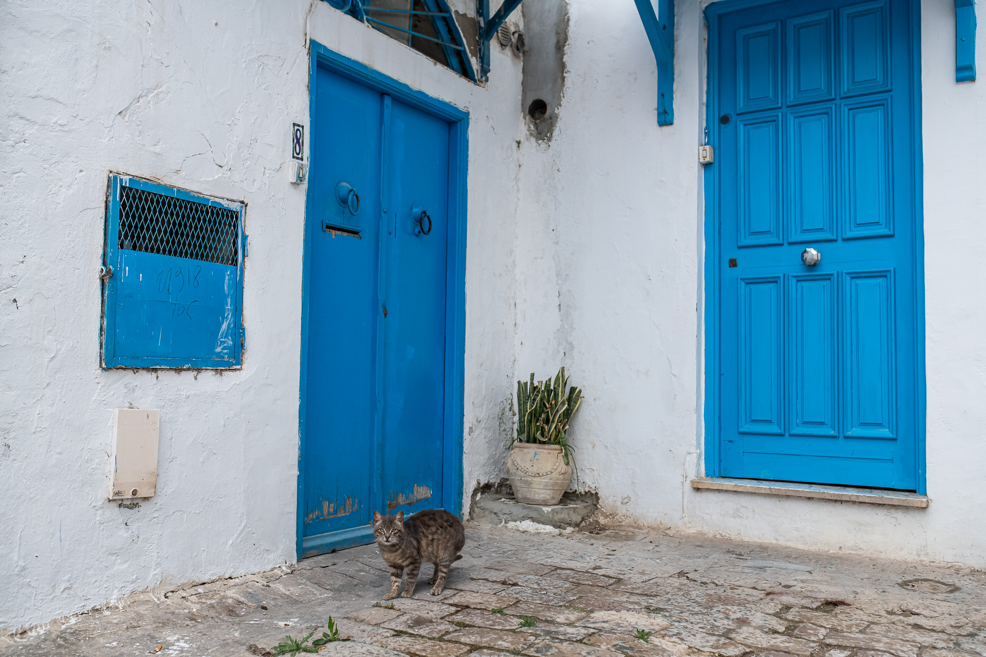 Amikor ott jártunk, épp esett, ami Tunéziában pár perces, de legfeljebb félórás zuhét jelent – és ez a zuhé is sokkal elviselhetőbb, mint itthon. Amikor végül megkegyelmezett az idő, és végre körbejártuk a falut, fel sem tűnt, hogy maradtak a vaskos felhők: a fehér falak és kék ajtók közt nem múlt el az illúzió, hogy süt a nap.