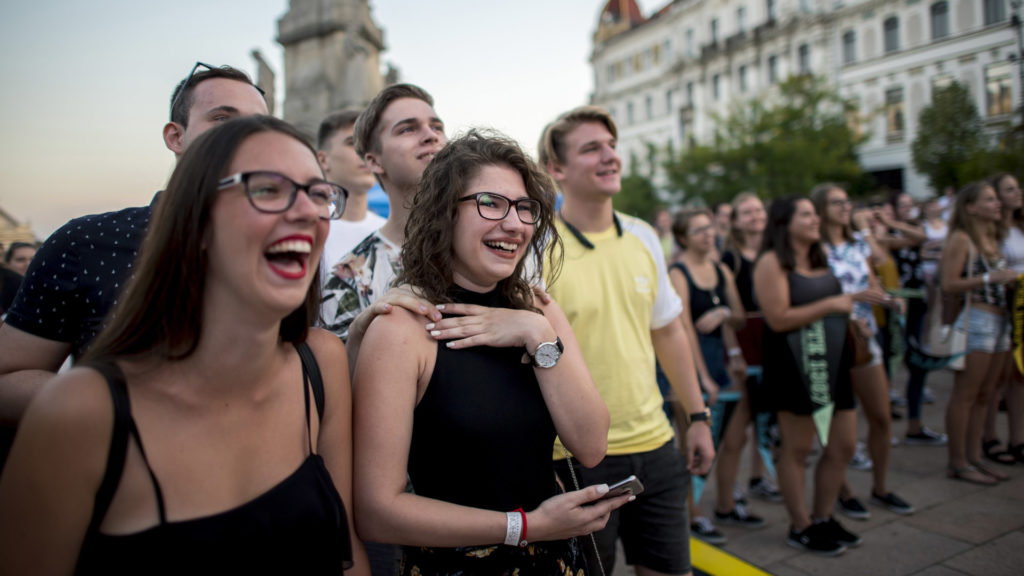 A felvételi ponthatárok kihirdetése Pécsett, a Széchenyi téren (Fotó: MTI/Sóki Tamás)