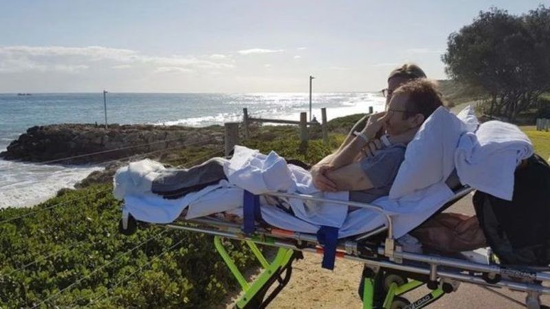 A 45 éves, végstádiumú rákban szenvedő férfi még utoljára szeretett volna eljutni kedvenc tengerpartjára, de már nem volt ereje hozzá. A négygyerekes ausztrál családapát végül az ápolók vitték ki a Burns Beachre, amelyről sok kedves emléket őriz. Azt is megörökítették, ahogy meghatódottságában elsírja magát.