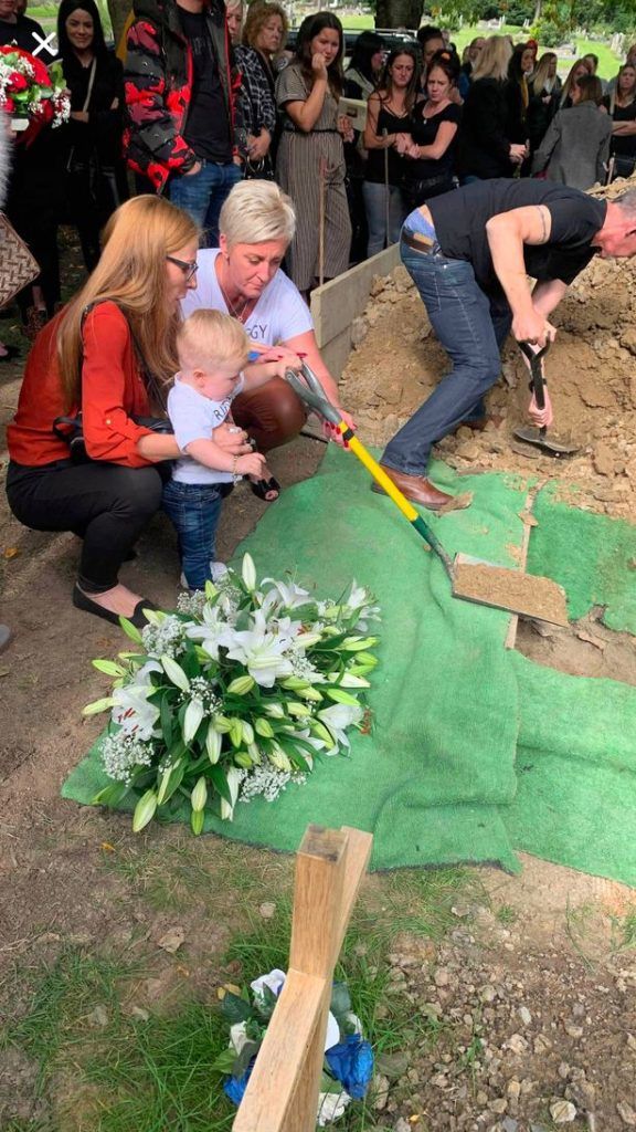 A felvételen a kis Cater látható, amint földet lapátol apja sírjára.