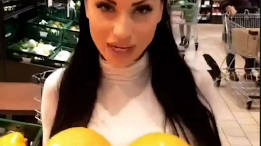 A hasonmás Katie Price citrusokkal a kezében