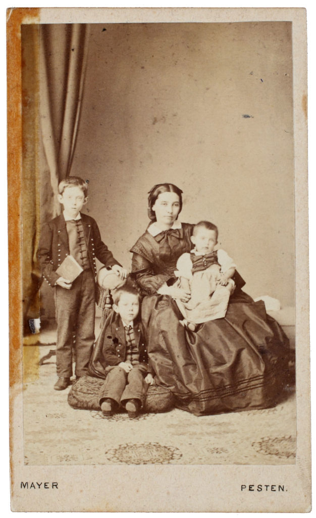 Szendrey Júlia Horvát Attilával, Árpáddal és Ilonával (Fotó: Mayer György. Feltehetően 1862-ben készült)