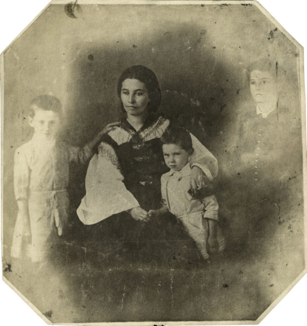 Szendrey Júlia Petőfi Zoltánnal és második házasságából származó 2 fiával, Horvát Attilával és Árpáddal, az 1850-es évek végén (Fotó: ismeretlen szerző)
