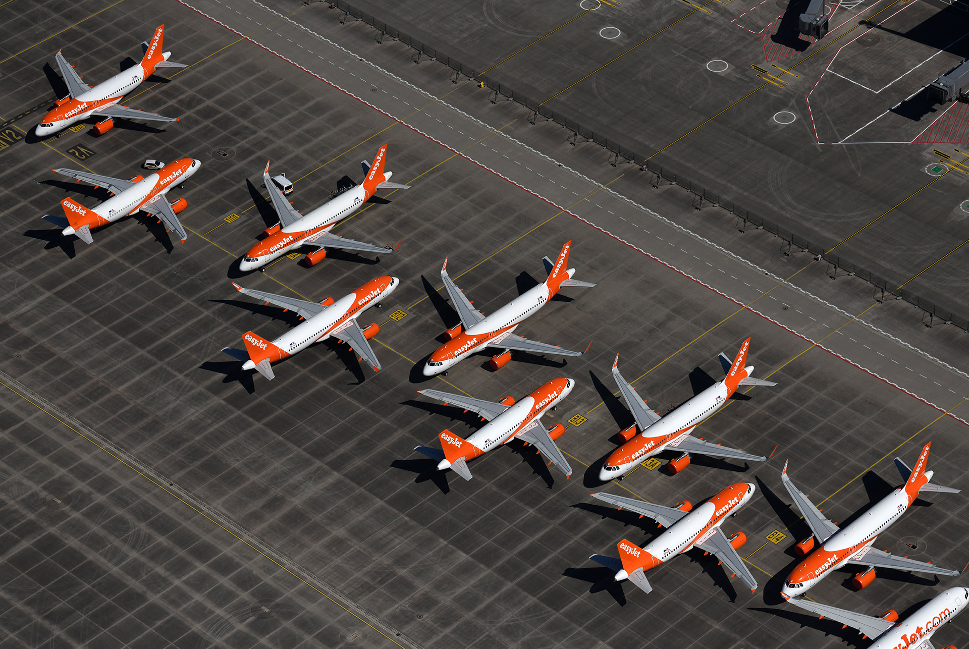 Az easyJet brit légitársaság repülőgépei a berlini Schönefeld repülőtéren (fotó: MTI/EPA/Oliver Lang)
