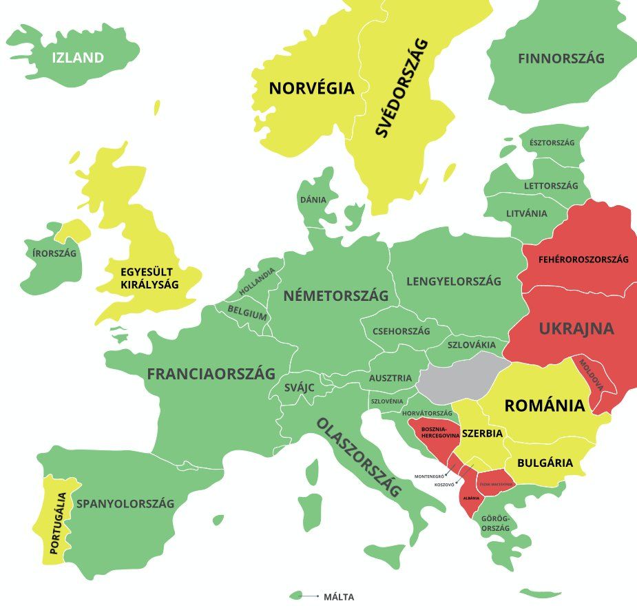A zöld jelzéssel besorolt ország területéről érkezők korlátozás nélkül beléphetnek Magyarországra. Ám sem az Amerikai Egyesült Államok, sem az Egyesült Királyság nem tartozik ebbe a körbe, mivel sárga jelzést kaptak.