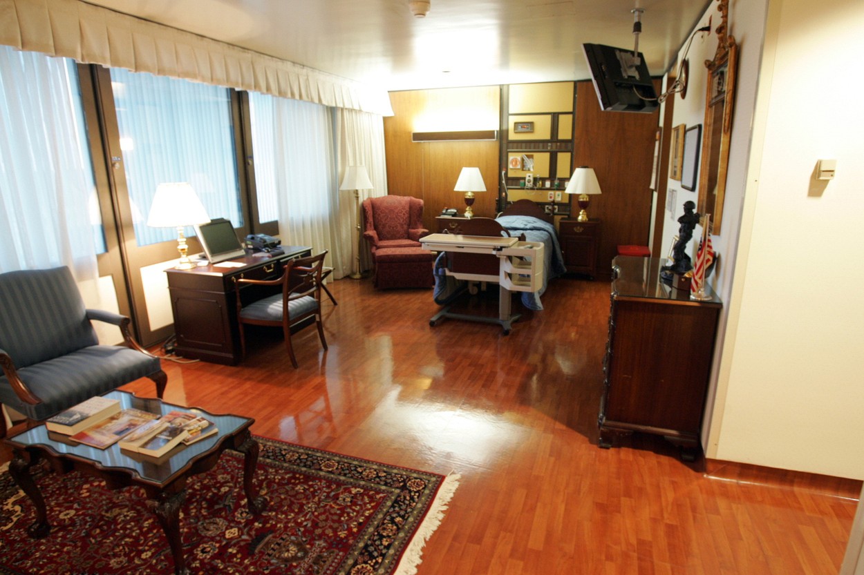 Donald Trump igazi luxuslakosztályban pihenheti ki magát, amin belül még a First Ladynek is külön lakosztályrész jut. A portán természetesen külön személyzet vigyáz az elnök egészségére és biztonságára, akik minden egyes kérését igyekeznek azonnal teljesíteni. A lakosztályon belül még egy nappali is található kandallóval, és egy biztonságos konferenciaterem is rendelkezésre áll. Ha megbecsült vendég jön látogatóba, egy ebédlő is akad a tisztességes közös étkezéshez. A lakosztály egy teljes emeletet foglal el az épületen belül. Kezelték már itt Richard Nixont, Ronald Reagant és ide hozták John F. Kennedyt is a végzetes dallasi napja után.
