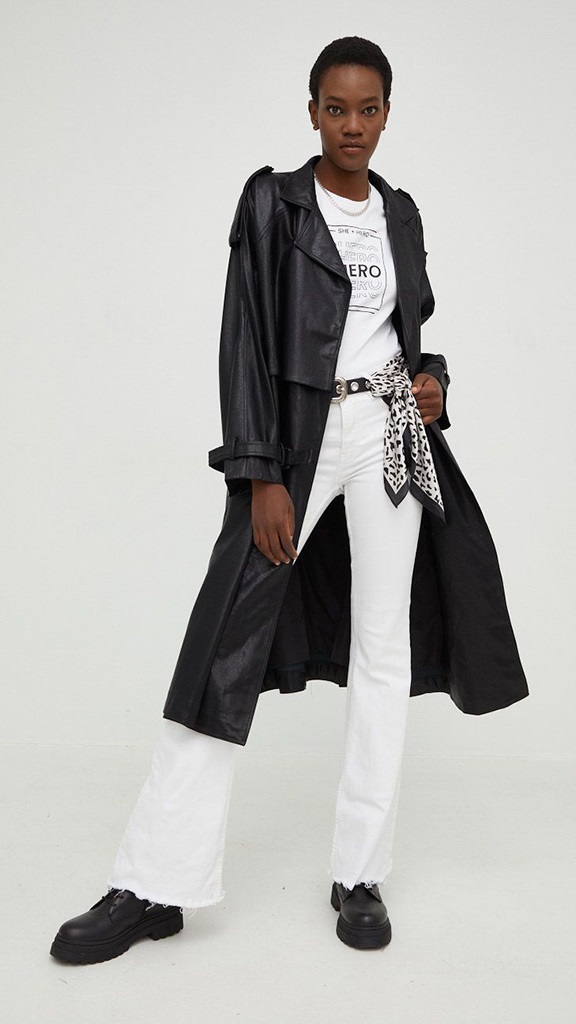 A SHERO kollekció az ősz legdivatosabb trendjeit vonultatja fel. Gyapjúkabátok, bőr ballonkabátok, és bomber- és bőrdzsekik egyaránt színesítik a kínálatot. Az expresszív vonalvezetésű, oversized kabátok vagy a feltűnő, piros öltöny – bár férfiak ruhatárát idézik, mégis a 80-as évekre jellemző power suit trendre utalnak. Ez a sikeres, talpraesett nők stílusa. A test vonalait hangsúlyozó ruhák aszimmetrikus nyakkidolgozásokkal, fodrokkal vagy kivágásokkal azoknak kedveznek, akik magabiztosnak érzik magukat a testükben. A kollekcióban ezek mellett olyan alapdarabok is megtalálhatók, mint az erőt sugárzó szlogenekkel ellátott pólók. A légies, lágyan redőzött anyagok kontrasztja a jellegzetes sötét farmerrel és a természetes bőrrel érdekes, változatos megjelenést alkot. A kollekcióban a fekete, a szürke, a fehér és a bézs árnyalatai töltik meg élettel a darabokat, némi erőteljes vörössel megbolondítva. A tiszta, kifejező, erőteljes színek a kollekció üzenetét hangsúlyozzák, utalva a nők szupererejére.