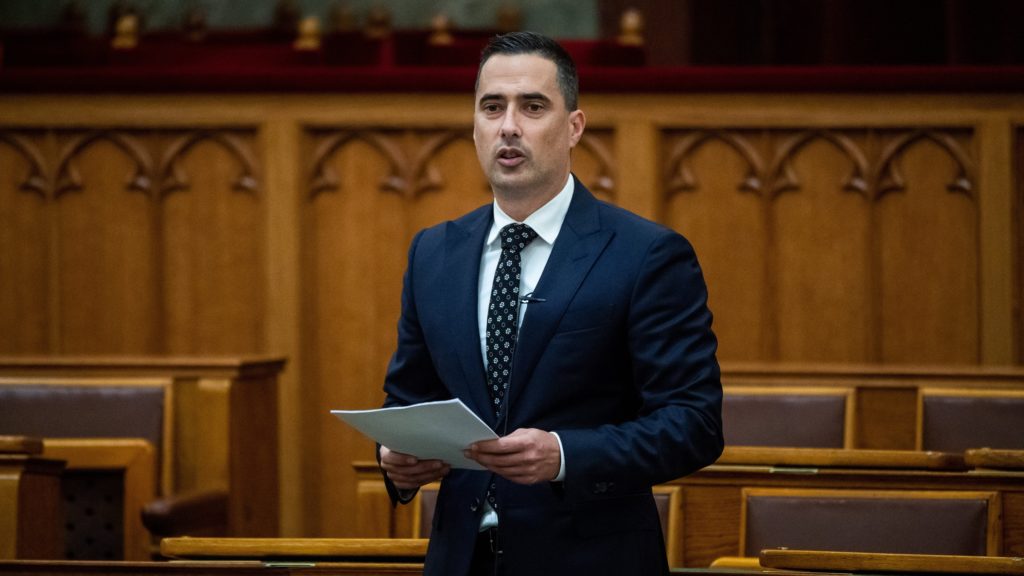 Ovádi Péter, a törvényalkotási bizottság fideszes tagja felszólal Az állatok védelme érdekében szükséges egyes büntetőjogi tárgyú törvények módosításáról szóló vitában az Országgyűlés plenáris ülésén 2021. november 29-én. (Fotó: MTI/Balogh Zoltán)