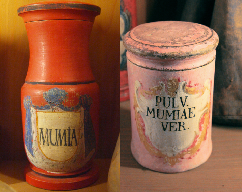 Persze nemcsak a szurokszerű anyagból lett «csodaszer», az emberi találékonyságnak nincs határa, és voltak, akik megszáradt húst és csontokat őrölték porrá helyette. Ez részben azért alakult így, mert nem volt elég múmia, így a patikusok csaltak, és (friss) emberi maradványokat használtak fel a gyógyír előállításához. Egy rohamot követően állítólag II. Károly angol király is koponya felhasználásával létrehozott gyógyszert kapott.