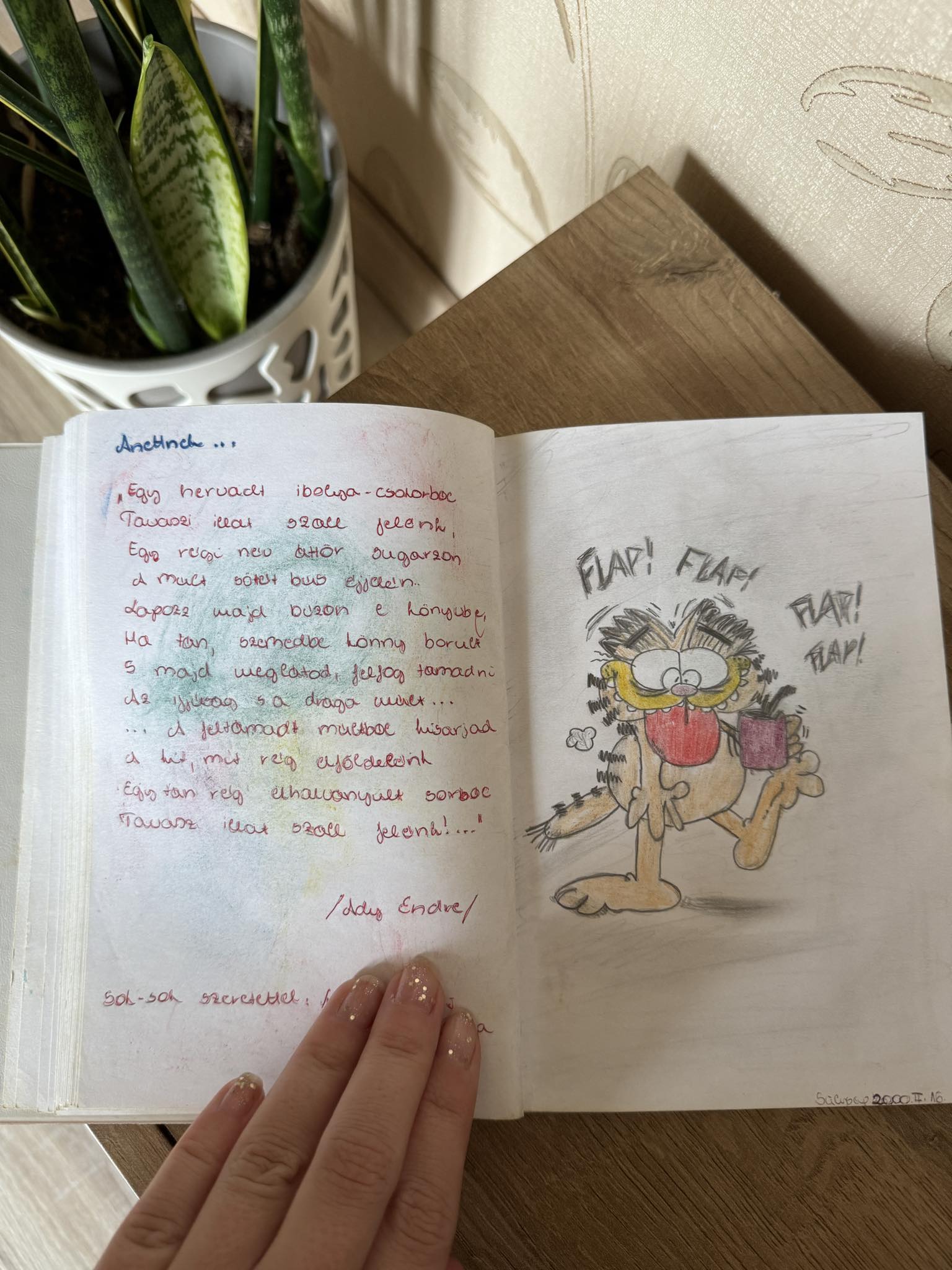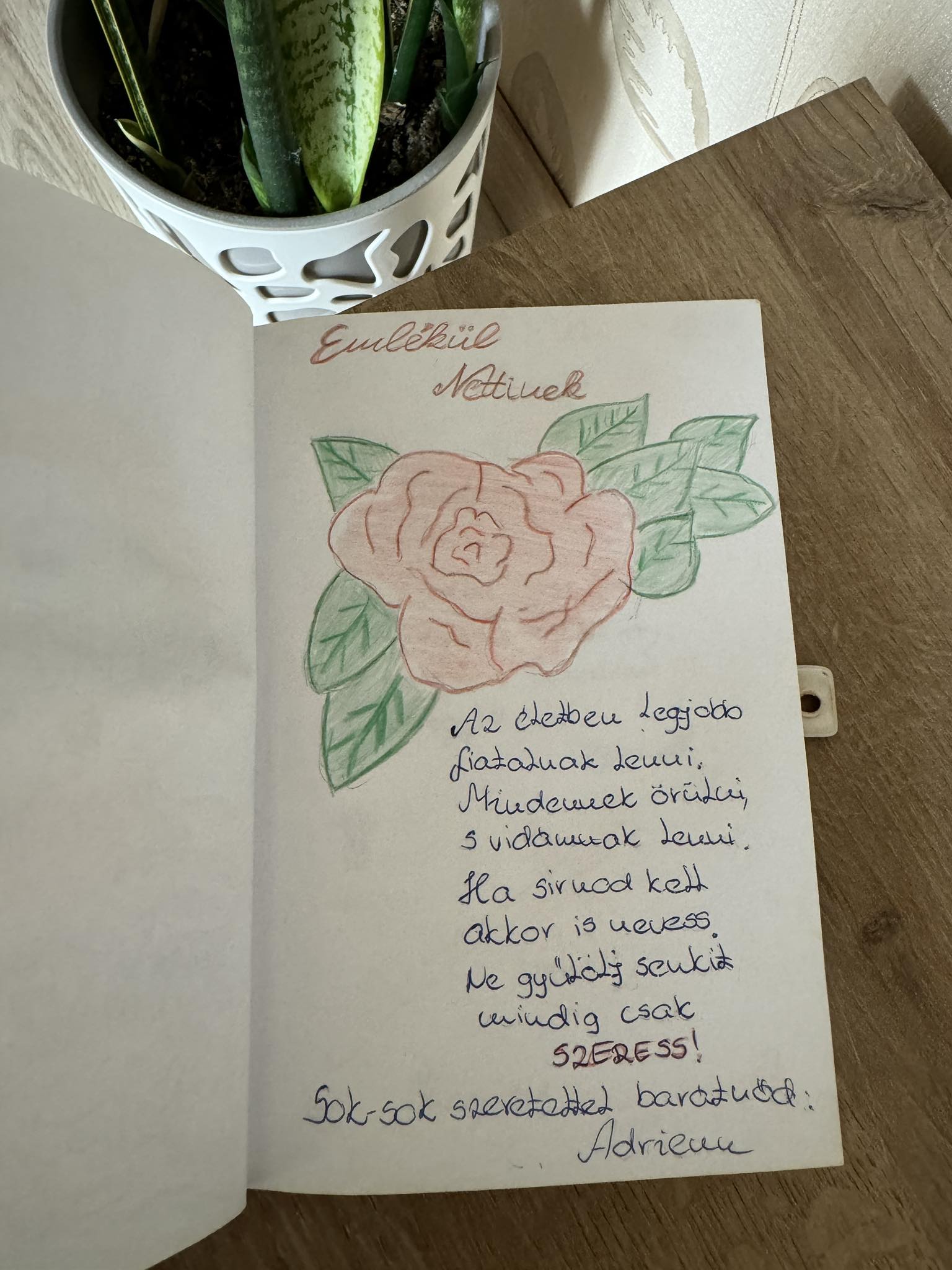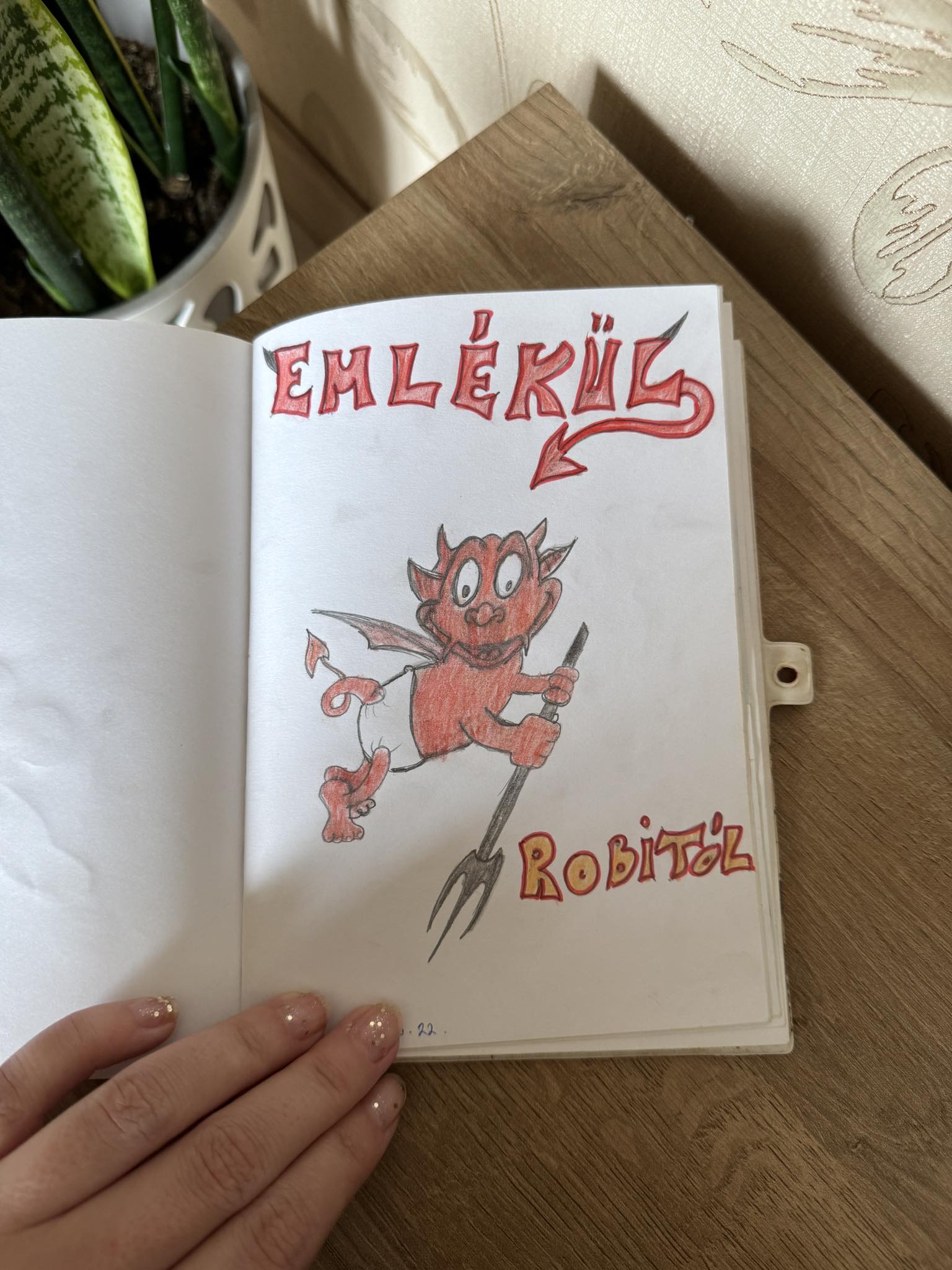 A ’90-es évek az általános iskolás korszakom volt, így mint minden rendes diák, ballagás előtt végigadtam az emlékkönyvemet az általános iskolás osztálytársaim között, hogy rajzoljanak bele nekem valamit emlékként. Bár bevallom, ez a kis könyvecske nem a padláson porosodik, a régi gyerekszobámban rátaláltam, így néhány rajzot és verset bemutatok belőle, mert nagyon kedves emlékek.