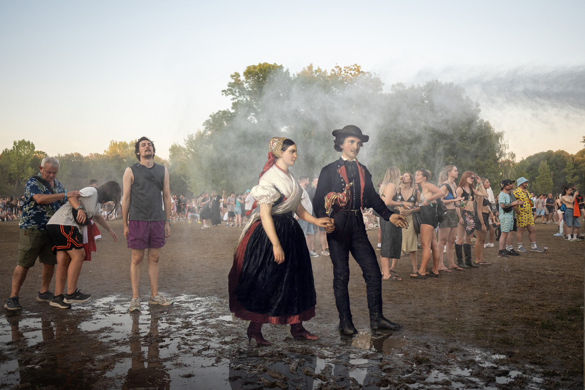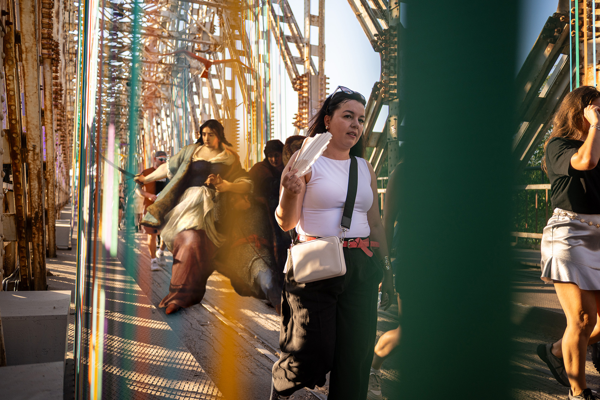 Elővettük hát egy régi (leírni alig merjük: hét évvel ezelőtti) ötletünket, leporoltuk a művészettörténet-tankönyveinket, és előtúrtuk a leghíresebb magyar festményeket a romantikus és klasszikus évtizedekből. Tudjátok, ők azok a festők, akiket azok is ismernek, akiket legutoljára az általános iskolában lehetett elrángatni múzeumba: Munkácsy, Székely, Szinyei és a többiek. Fogtuk hát a világhírű festmények főszereplőit, és kivittük őket a Szigetre. Pontosabban aprólékos munkával, szigorúan kézzel, mindenféle AI-t és egyéb trükközést mellőzve körbevágtuk őket, lőttünk sok-sok hozzájuk passzoló fotót, majd beillesztettük őket a helyükre.