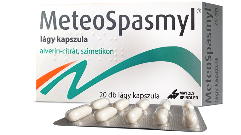 Ismerd meg a MeteoSpasmylt, ami két hatóanyag kombinációja egyetlen kapszulában: puffadásgátló és görcsoldó hatású gyógyszer. A MeteoSpasmyl lágy kapszula csökkenti a belek gáztartalmát és enyhíti az alhasi görcsöket.