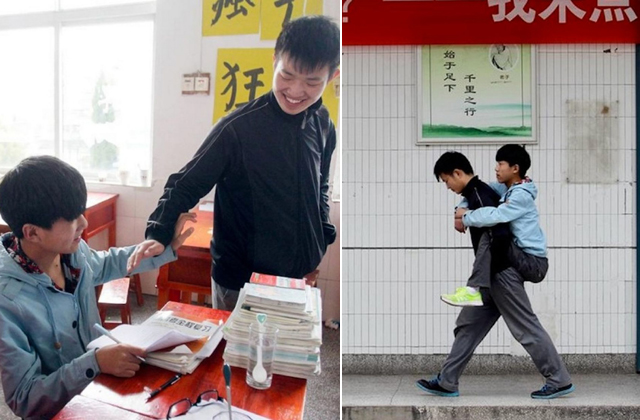 A 19 éves kínai Zhang Chi izomsorvadásban szenved, emiatt nem tud járni és kerekes széke sincs. Iskolába sem tudna eljutni, ha a legjobb barátja, Xie Xu nem segítene neki. A fiú 2012 óta minden nap a hátán cipeli be az iskolába Zhangot, átviszi egyik teremből a másikba, a tanítás végén pedig ugyanígy mennek haza. Mindemellett Xie naponta háromszor ételt is visz a barátjának és a ruháit is segít kimosni.