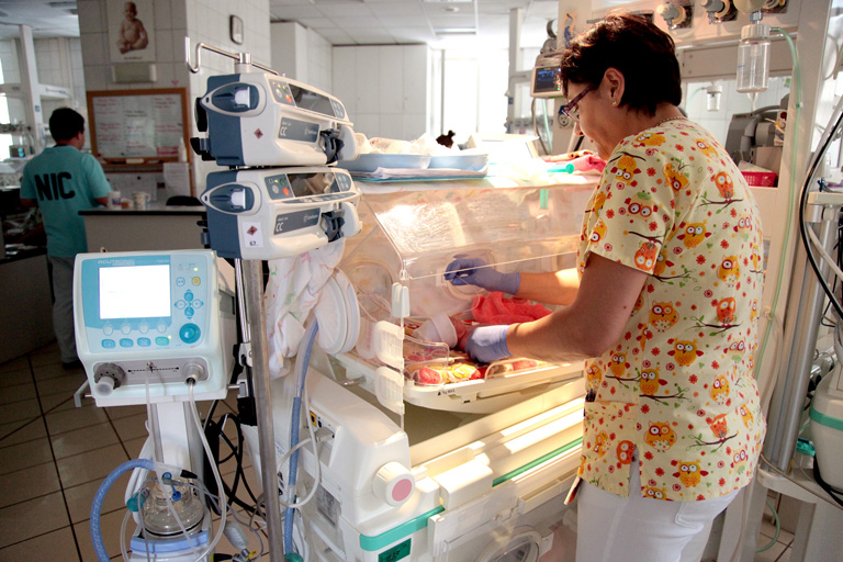 Tény, hogy szinte meg sem állunk. Háromóránként el kell látnunk minden babát. Természetesen csak akkor, ha nincs váratlan esemény. Ebben az ágyneműcserétől kezdve a vérvételig, vérnyomás-mérésig, etetésig, gyógyszerek beadásáig minden benne van. Néha nyolc baba is tartozik egy ápolóhoz, ez azt jelenti, hogy mire a végére érünk egy körnek, kezdhetjük elölről. Kivételt képez a délutáni látogatási idő, ilyenkor tudunk a szülőkkel foglalkozni.
