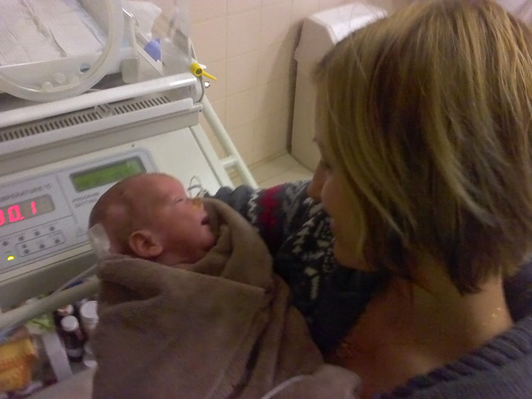 Azt mondja, nem ritka, hogy ha valakinek jóval idő előtt folyik el a vize, pihentetik, hátha magától újratermelődik. Mónikának nem termelődött újra, de egy idő után, amikor már alig érezte a pici mozgását, nagyon megijedt. „Lélekben fel voltam készülve arra, hogy a kisbabám meg fog halni” – mondja. Átszállították a II. Női Klinikára, és azonnal császármetszést végeztek rajta. „Petit újra kellett éleszteni, mint megannyi koraszülött babát. Azt, hogy mennyi ideig volt oxigénhiányos állapotban, pontosan sosem fogom megtudni. Később, amikor még a kórházban el kellett intézni az anyakönyvi kivonatát, csak álltam, hogy nekünk ezt miért kell, úgysem fog élni” – mondja a nő, miközben hullanak a könnyei.