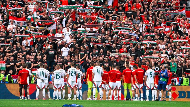 A magyar csapat a Magyarország – Svájc mérkőzés után a kölni RheinEnergie Stadionban – Fotó: MTI/Koszticsák Szilárd