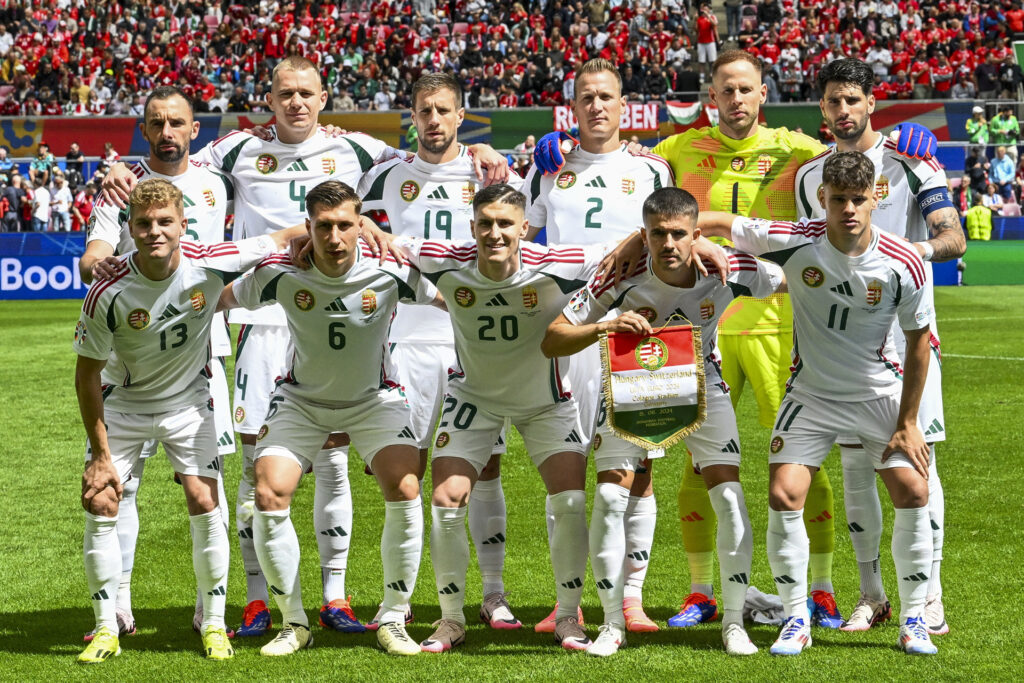 A magyar válogatott Kölnben, a svájciak elleni nyitómeccsen (Fotó: MTI/Illyés Tibor)