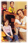 Számomra sokkal fontosabb, hogy játsszak a gyerekeimmel, ha ez nekik és nekem is jólesik. Szerintem fontos, hogy az ember a pillanat érzése szerint éljen, mert a „van”-ban van a boldogság. Soha nem lehet kockázni a gyerekekkel, ha most azonnal fel kell mosni a konyhakövet! Nem kell mártírnak lenni! A gyerekeket is bevontam a munkába. Korábban kértem, könyörögtem és kiabáltam. Ma inkább jutalmazom őket. A segítésért csillag jár, tíz csillagért pedig valamilyen jutalom, kirándulás, állatkert. Marci felmos, Attila gyakran elmosogat, és virágot öntöz, de a fő feladatuk az, hogy pakolják össze a játékaikat. Versengve segítenek. Mióta az ikrek megszülettek, a férjem is segít, vasal, alkalomadtán elmosogat és kitereget. Alapvetően mégis hagyományos munkamegosztás van közöttünk. Ottó ügyvéd, és óriási a felelőssége, gyakran fáradt, amikor hazajön. Ha megkérem valamire, megcsinálja. De valahogy úgy érzem, neki más a dolga, ő a családfenntartó, és ez négy gyerek mellett már nem is olyan egyszerű feladat.