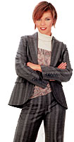 A nadrágkosztüm alapdarab a női ruhatárban, hiszen a legjobban kihasználható összeállítások közé tartozik. A szürke csíkos kétrészes „feldobható” mintás felsőrésszel, amely akár a garbó fölött is viselhető (Mango).