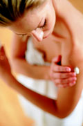 • Az aromatikus szaunaolajokat ne kenjük a bőrünkre, hanem vízzel hígítsuk és tegyük egy tálkába, vagy locsoljuk a szaunakályha izzó köveire! Élénkít: a citrom-, a borsmenta-, az eukaliptusz- és a grépfrútolaj. Ellazít: a bergamott-, a jázmin- és a mandarinolaj.