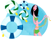 • Kellékek: szénsavmentes ásványvíz, strandkendő hozzáillő papuccsal, színes hajcsat, jó illatú naptej, napszemüveg, néhány magazin, esetleg könyv (legjobb a nyelvkönyv, hadd lássák, mennyire műveltek vagyunk!), kendő vagy szalmakalap.