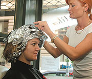 A hajra két ellentétes színárnyalatot fest a fodrász, ettől válik satírozott hatásúvá